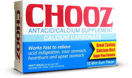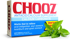 Buy nowChoose Chooz, a sugar free and calcium rich antacid for fast relief of acid indigestion, heartburn, and an upset stomach.