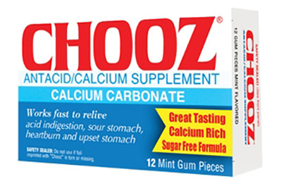 Choose Chooz, a sugar free and calcium rich antacid for fast relief of acid indigestion, heartburn, and an upset stomach.